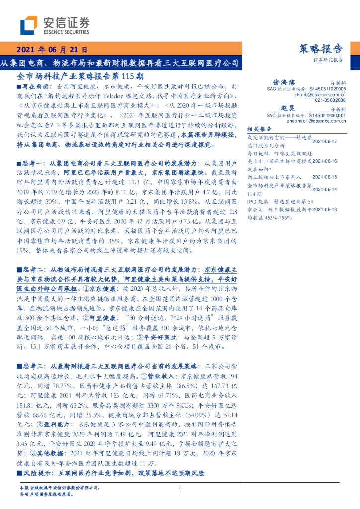 安信证券:从集团电商、物流布局和最新财报数据,再看三大互联网医疗公司.pdf
