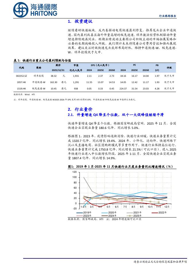 海通国际:快递行业更新报告:快递件量增速趋缓,反内卷助盈利修复.pdf