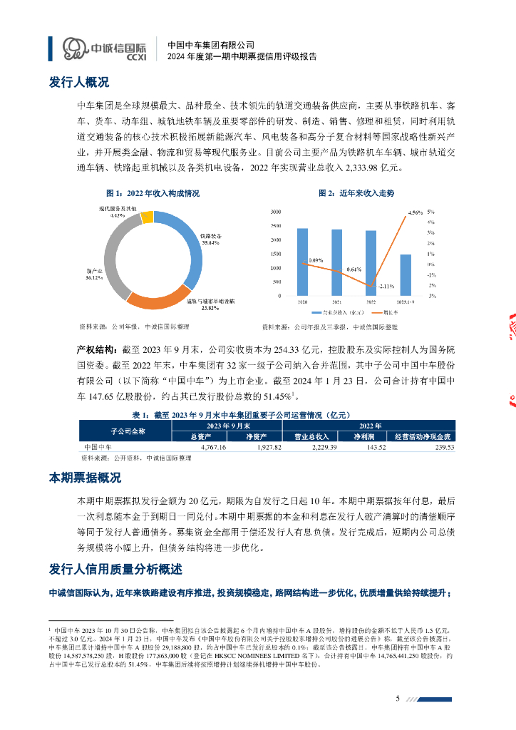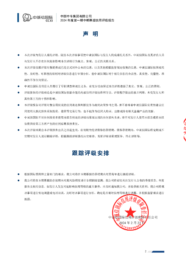 中诚信:中国中车集团有限公司2024年度第一期中期票据信用评级报告.pdf