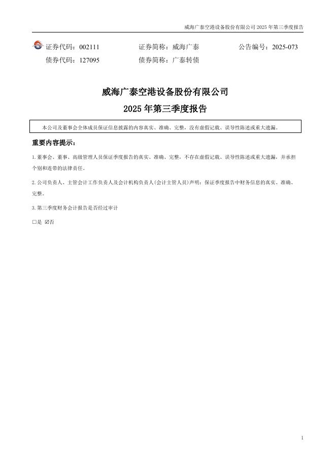 002111-威海广泰:2025年三季度报告.pdf