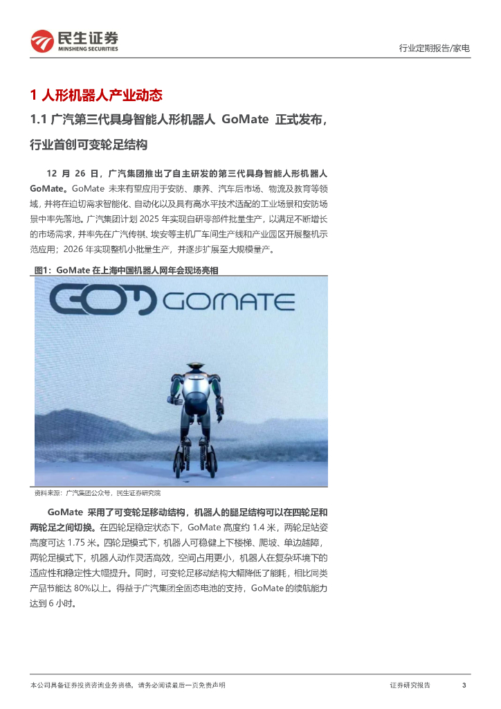 民生证券:人形机器人产业周报:广汽发布人形机器人GoMate,星动纪元更新大模型进展.pdf