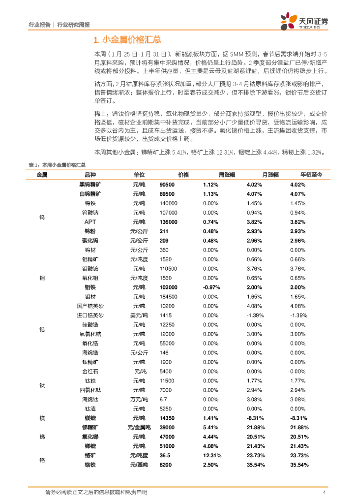 天风证券:稀有金属行业:小金属:锂钴价格全线上涨,节后或仍将持续.pdf