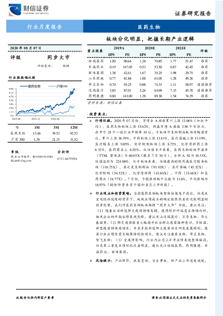 财信证券:医药生物行业月度报告:板块分化明显,把握长期产业逻辑.pdf