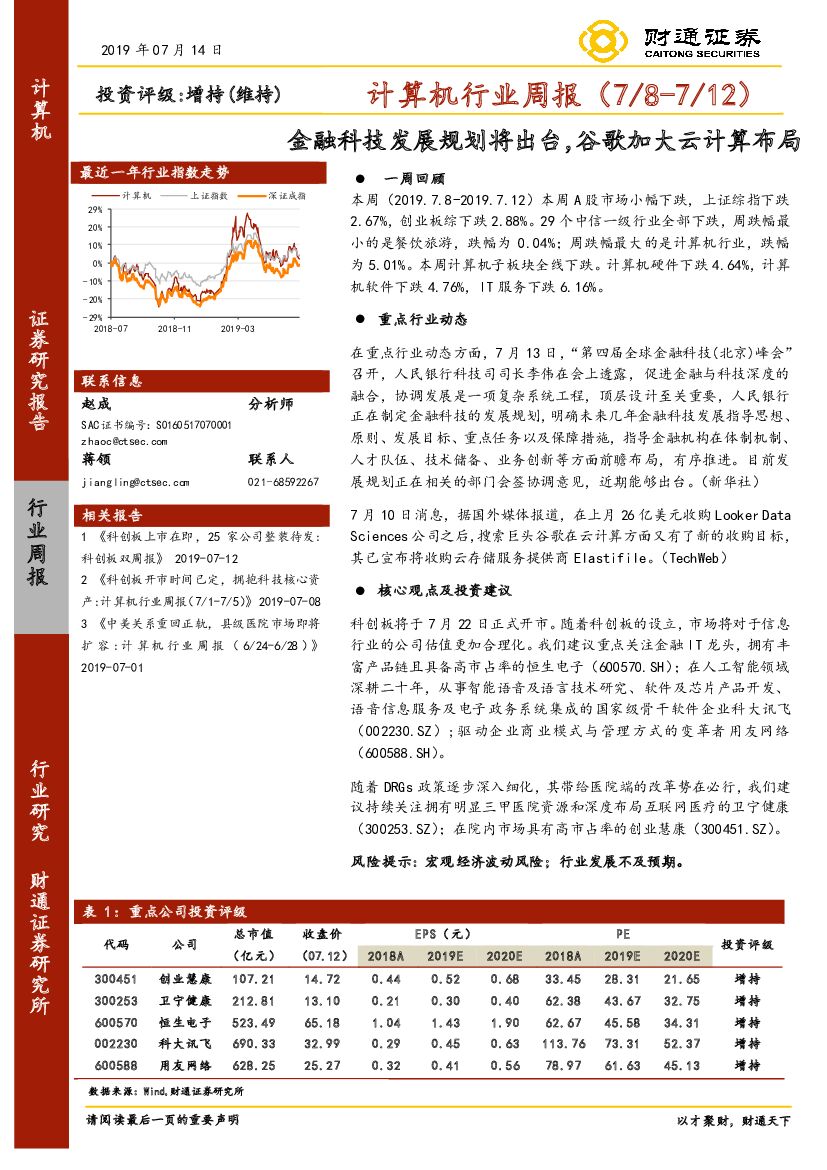 财通证券:计算机行业周报:金融科技发展规划将出台,谷歌加大云计算布局.pdf