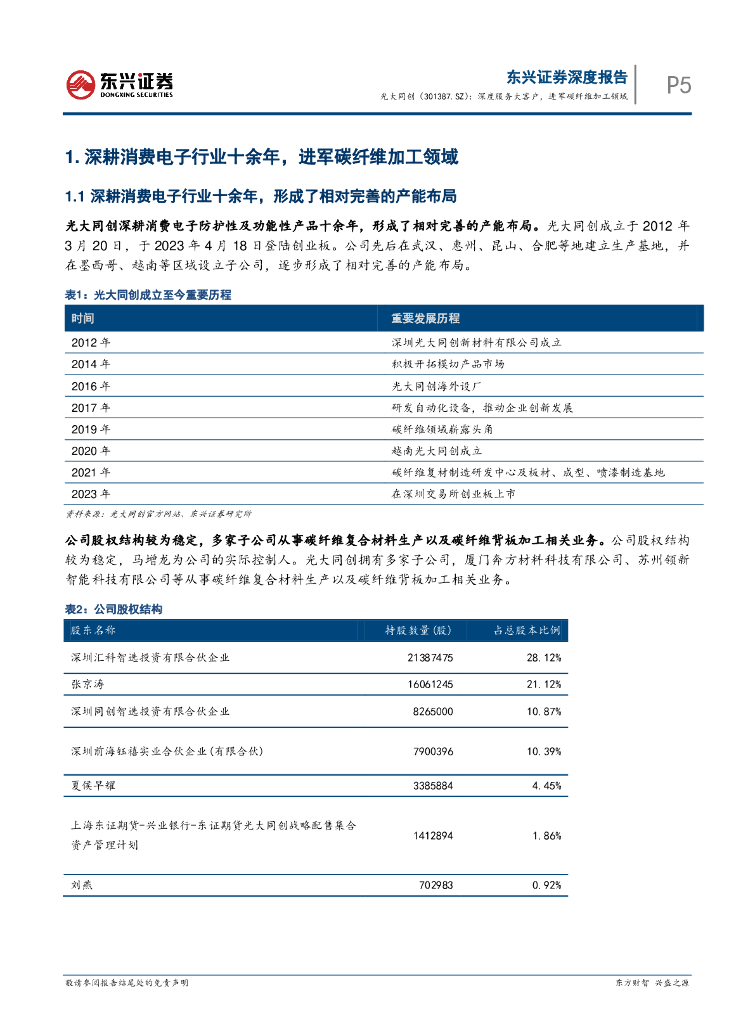 东兴证券:光大同创(301387)-深度服务大客户,进军碳纤维加工领域.pdf