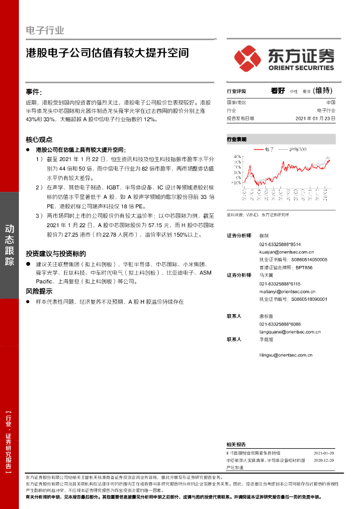 东方证券:电子行业:港股电子公司估值有较大提升空间.pdf