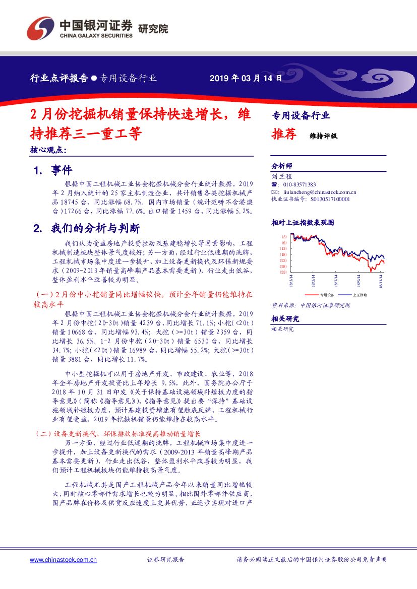 中国银河:专用设备行业:2月份挖掘机销量保持快速增长,维持推荐三一重工等.pdf