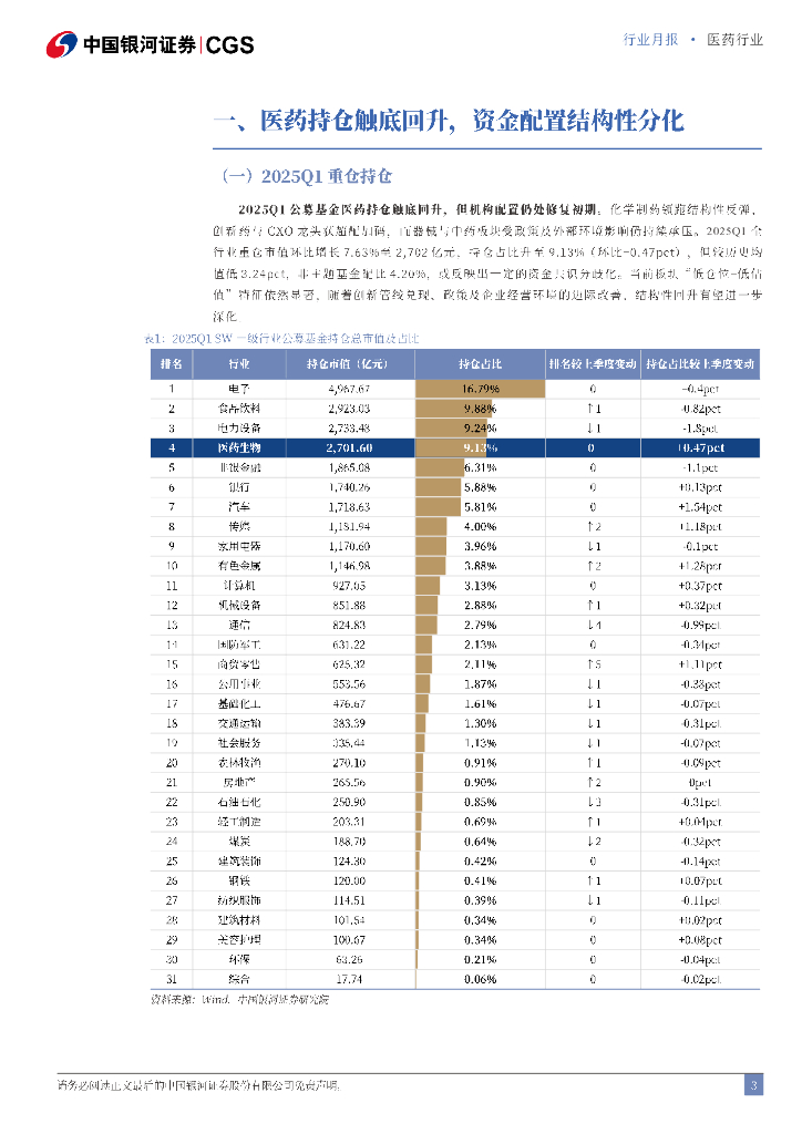中国银河:医药行业月报:医药持仓触底回升,关注创新及消费主线.pdf