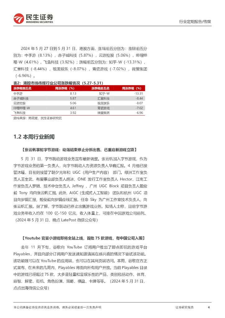 民生证券:传媒互联网行业周报:腾讯元宝发布,持续关注AI产业进度和应用方向.pdf