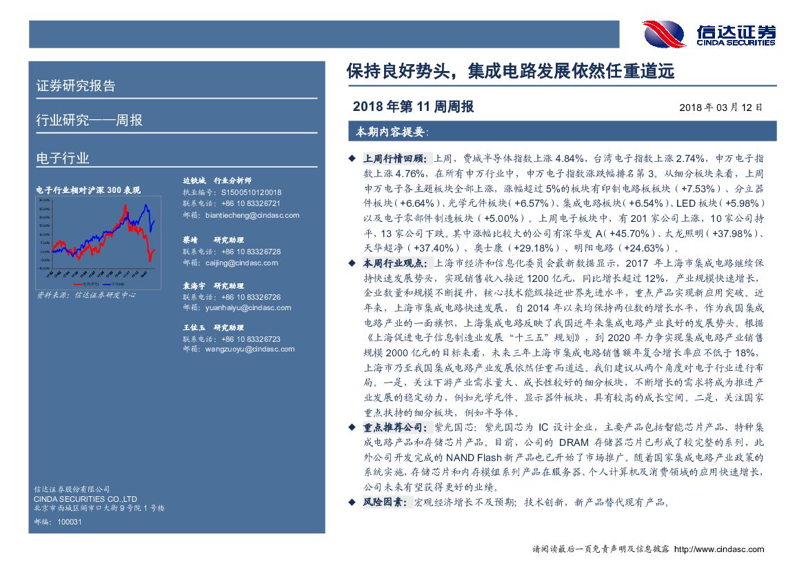 信达证券:电子行业周报:保持良好势头,集成电路发展依然任重道远.pdf