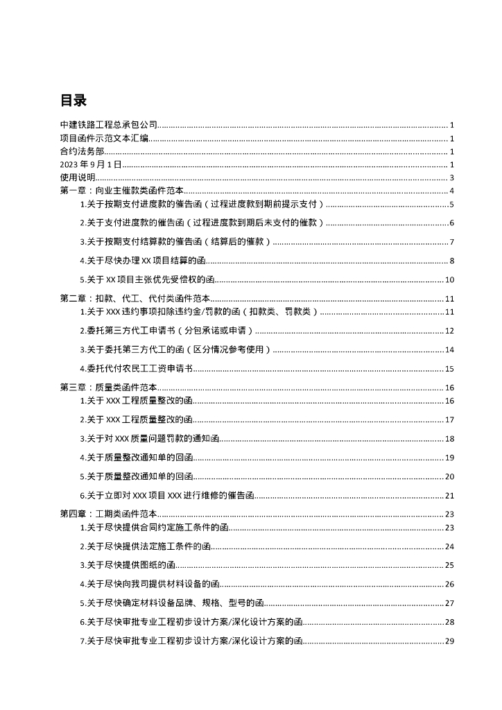 铁路工程总承包公司项目函件示范文本汇编.doc