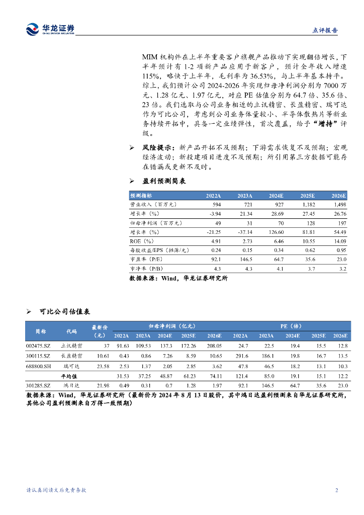 华龙证券:鸿日达(301285)-点评报告:行业复苏支撑主业增长,新业务稳步拓展.pdf