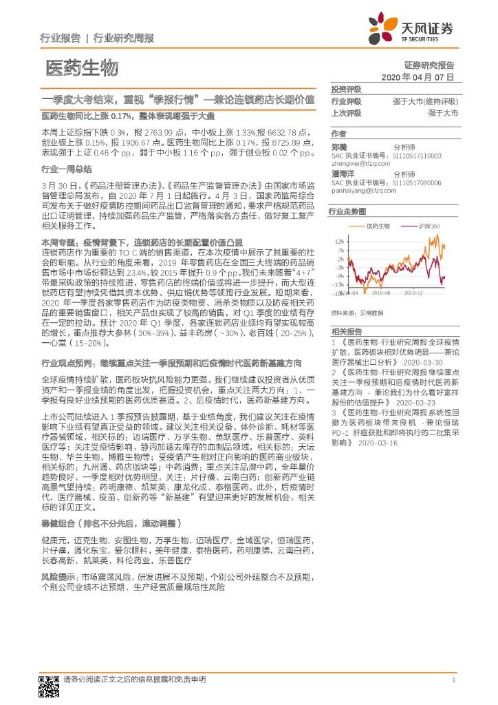 天风证券:医药生物:一季度大考结束,重视“季报行情”—兼论连锁药店长期价值.pdf