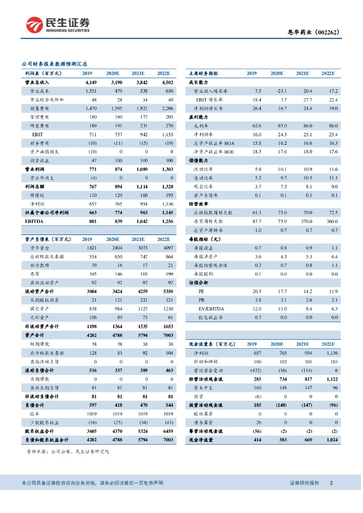 民生证券:恩华药业2020年1季报点评:老产品保持稳定增长,二线品种有望高速增长,工业板块保持稳定增长.pdf