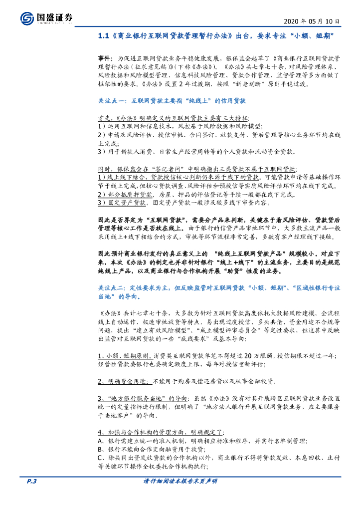 国盛证券:非银金融:本周聚焦—《商业银行互联网贷款管理暂行办法》出台,明确定位“小额、短期”.pdf