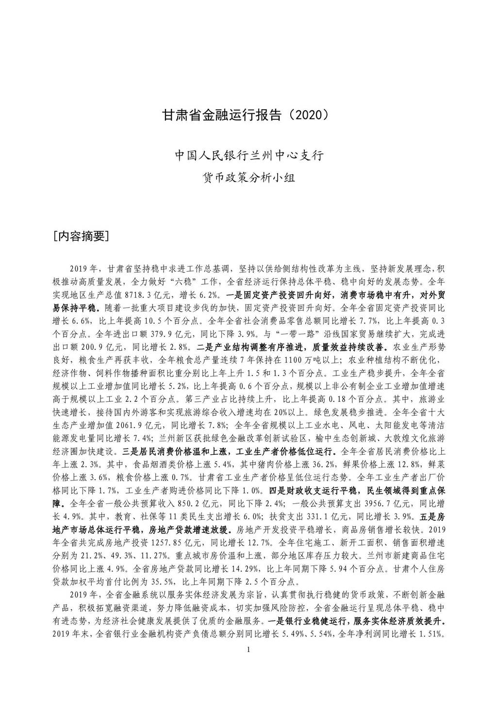 中国人民银行:2020甘肃省金融运行报告.pdf