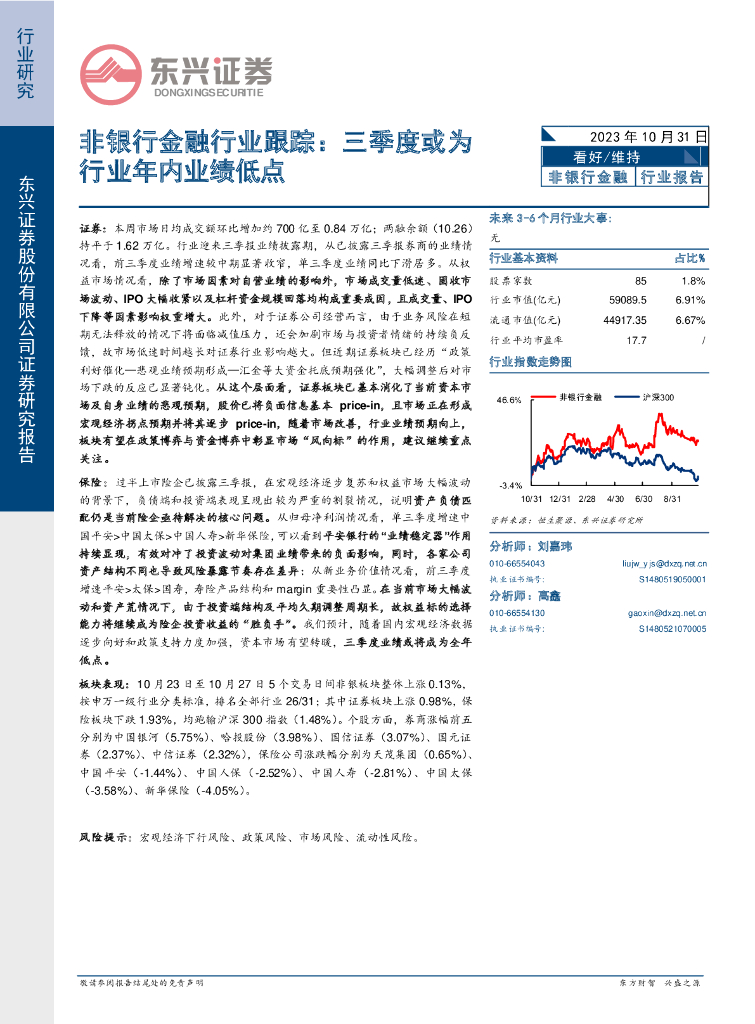 东兴证券:非银行金融行业跟踪:三季度或为行业年内业绩低点.pdf