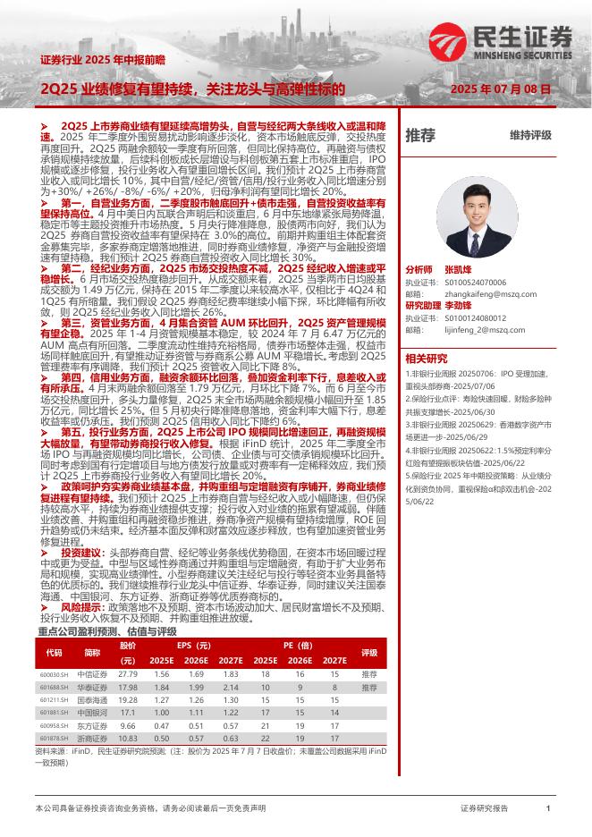 民生证券:证券行业2025年中报前瞻:2Q25业绩修复有望持续,关注龙头与高弹性标的.pdf