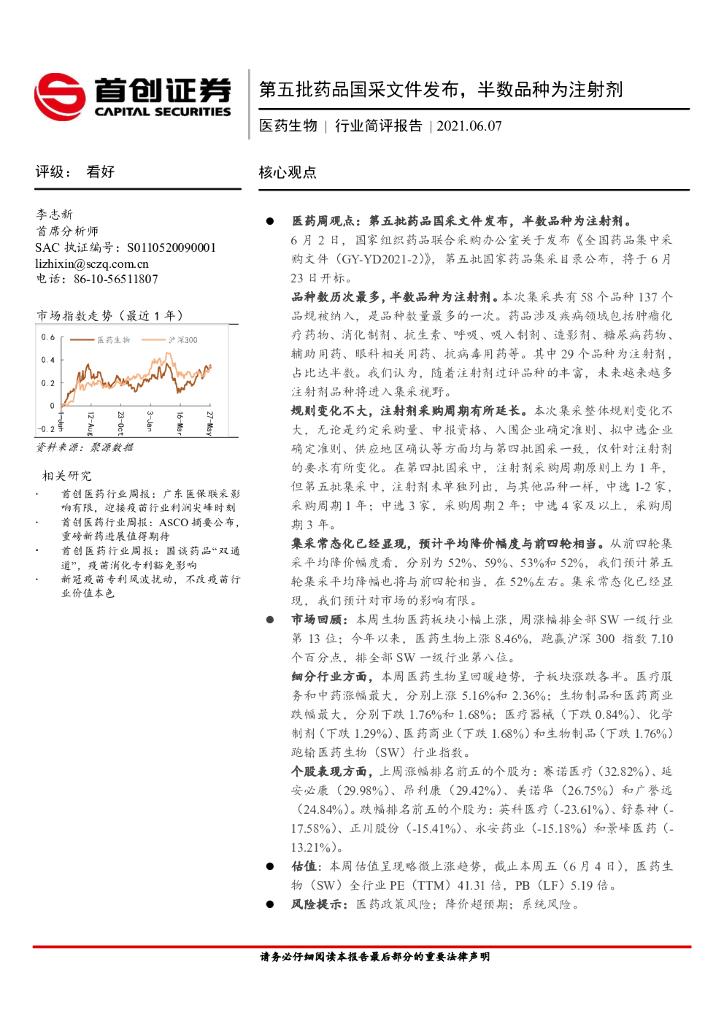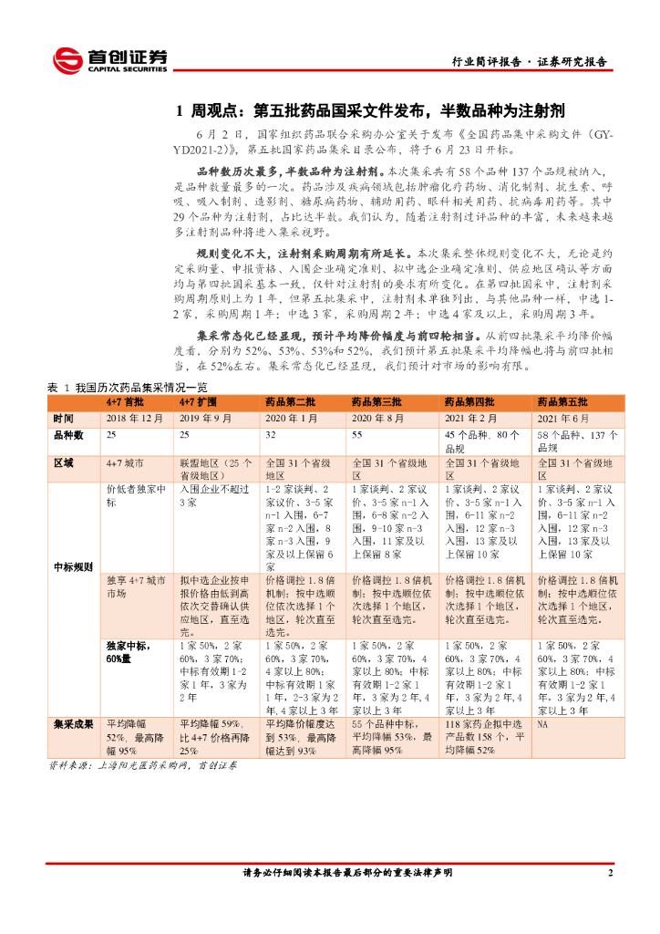 首创证券:医药生物行业简评报告:第五批药品国采文件发布,半数品种为注射剂.pdf