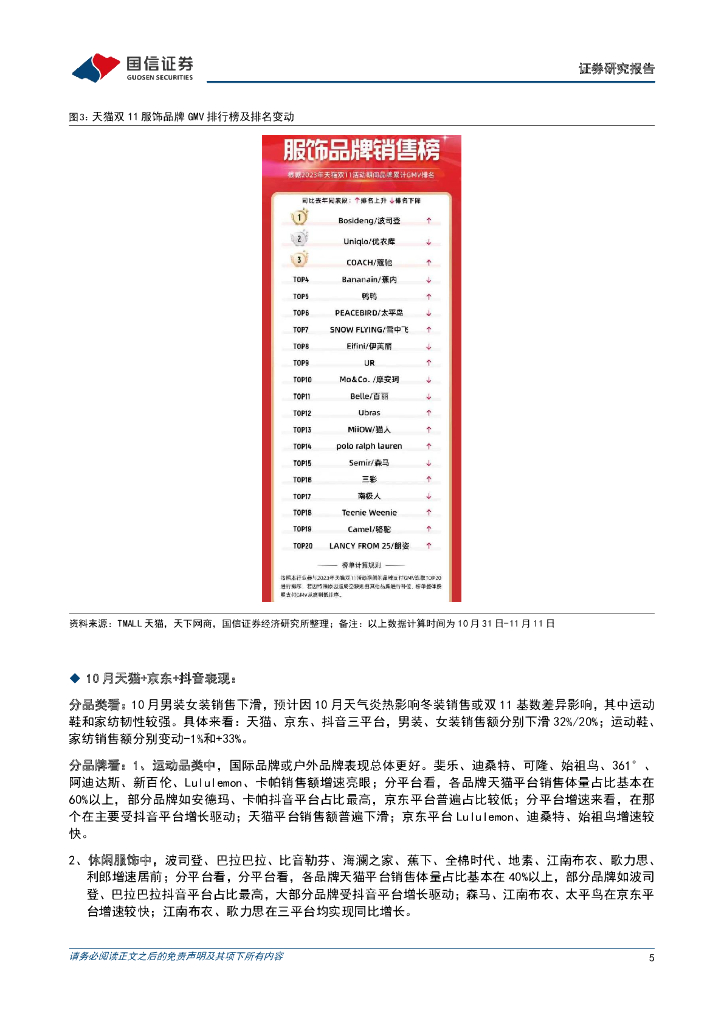 国信证券:纺织服装“双十一”快评:运动户外增长亮眼,波司登天猫排名提升.pdf