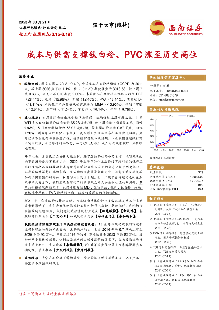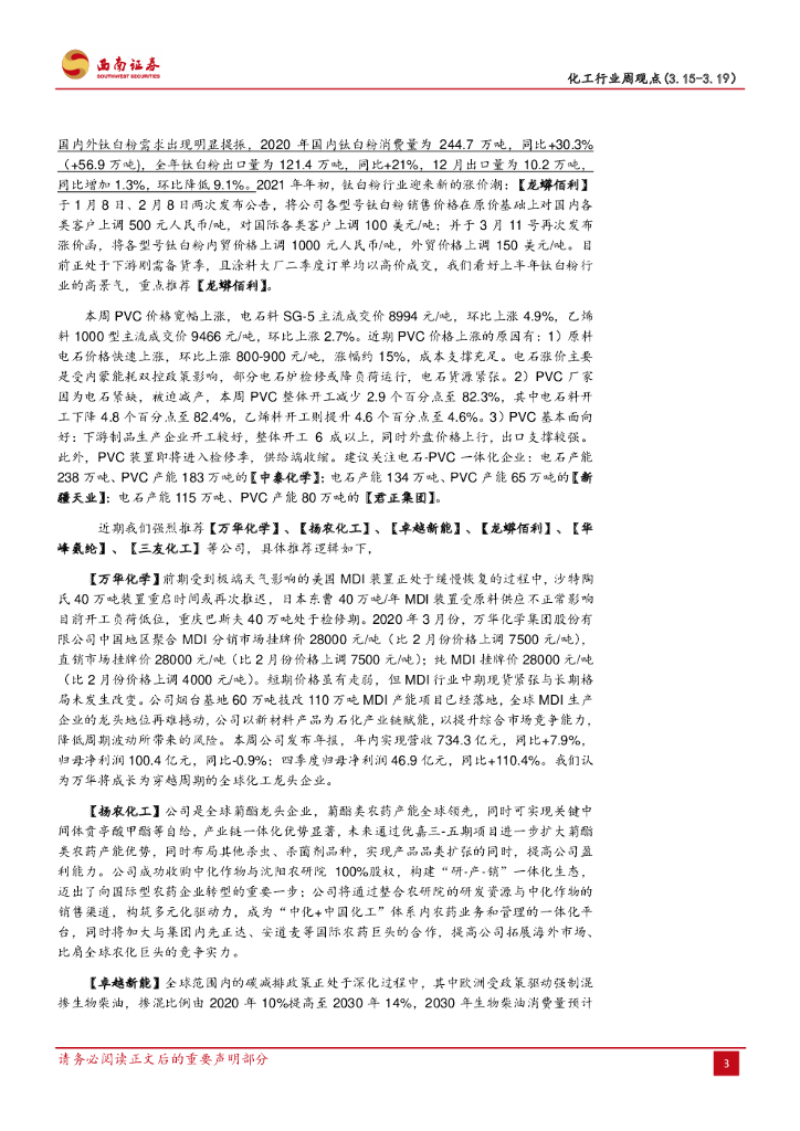 西南证券:化工行业周观点:成本与供需支撑钛白粉、PVC涨至历史高位.pdf