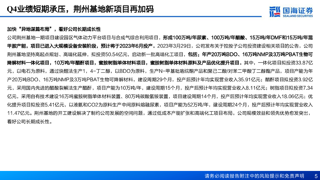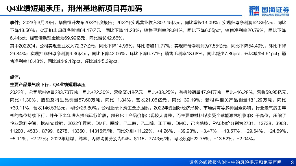 国海证券:华鲁恒升(600426)-2022年报点评:Q4业绩短期承压,荆州基地新项目再加码.pdf
