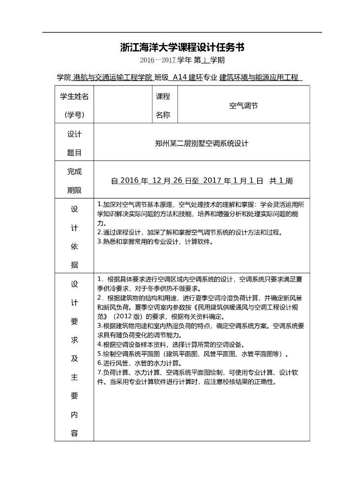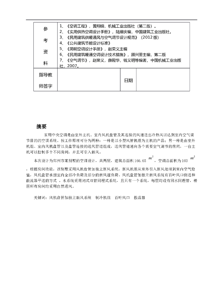 郑州别墅空调系统设计,33页word.doc