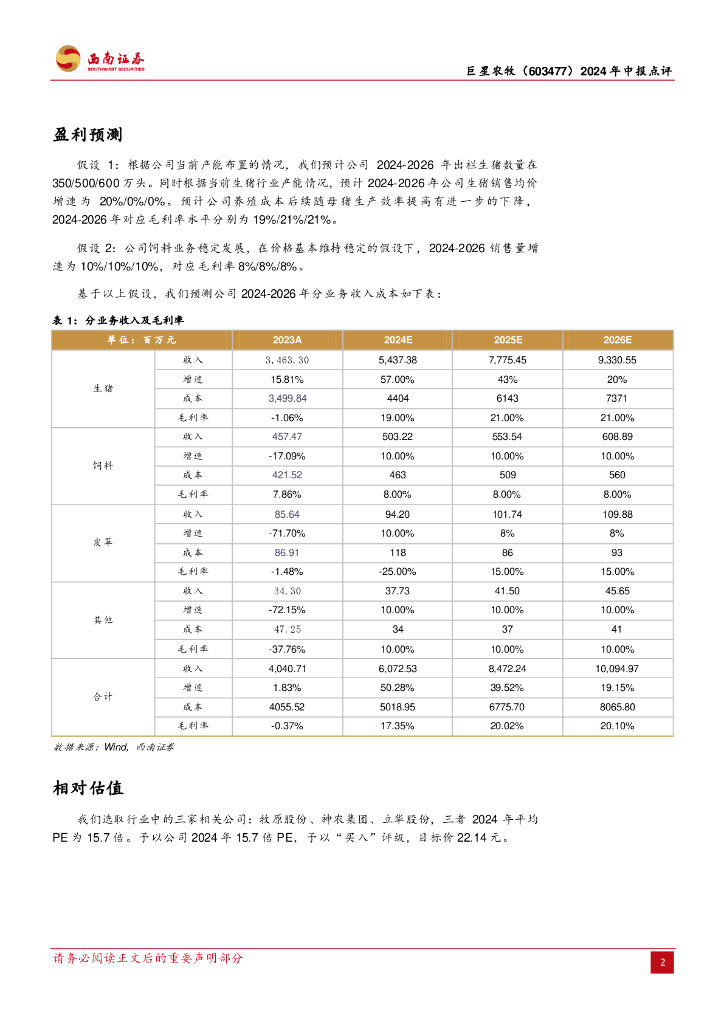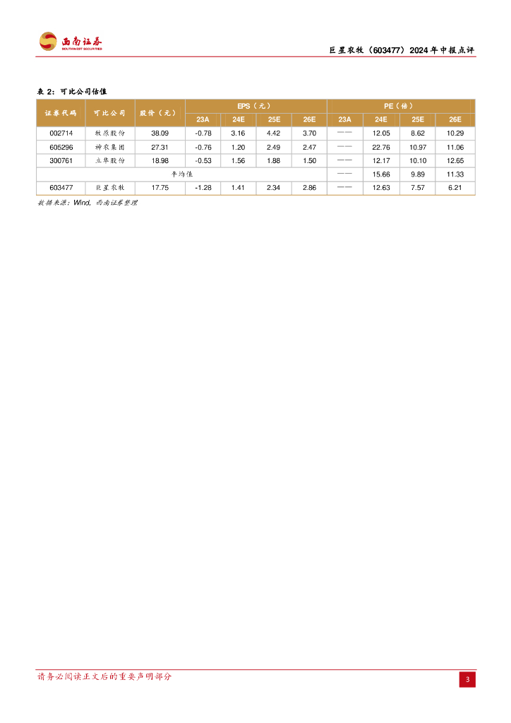 西南证券:巨星农牧(603477)-2024年中报点评:牢铸成本优势,养殖业务扭亏为盈.pdf
