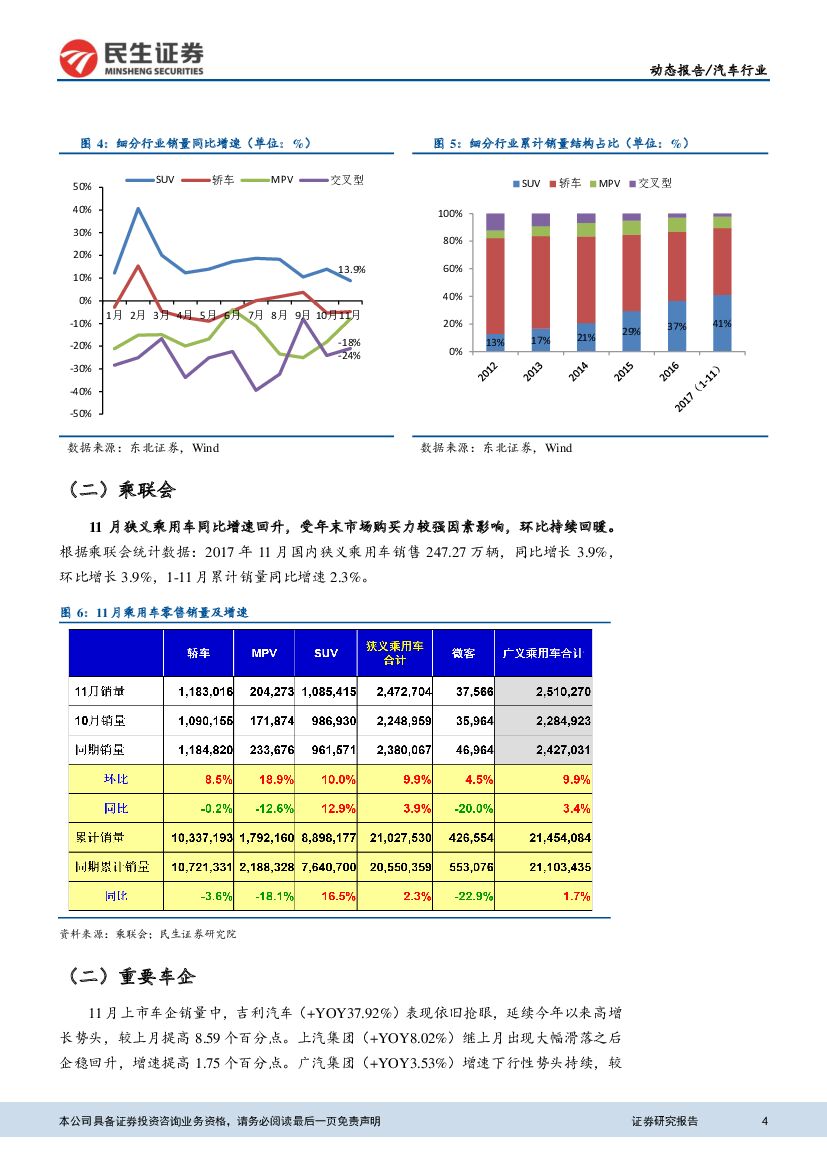 民生证券:汽车数据监控系列之2017年11月乘用车:行业回暖11月环比高增长 企业增速分化明显.pdf