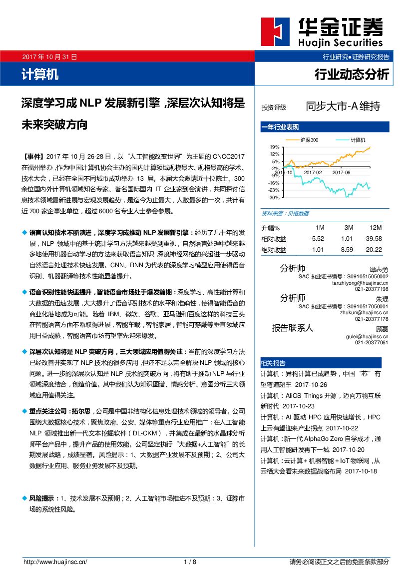 华金证券:计算机行业动态分析:深度学习成NLP发展新引擎,深层次认知将是未来突破方向.pdf