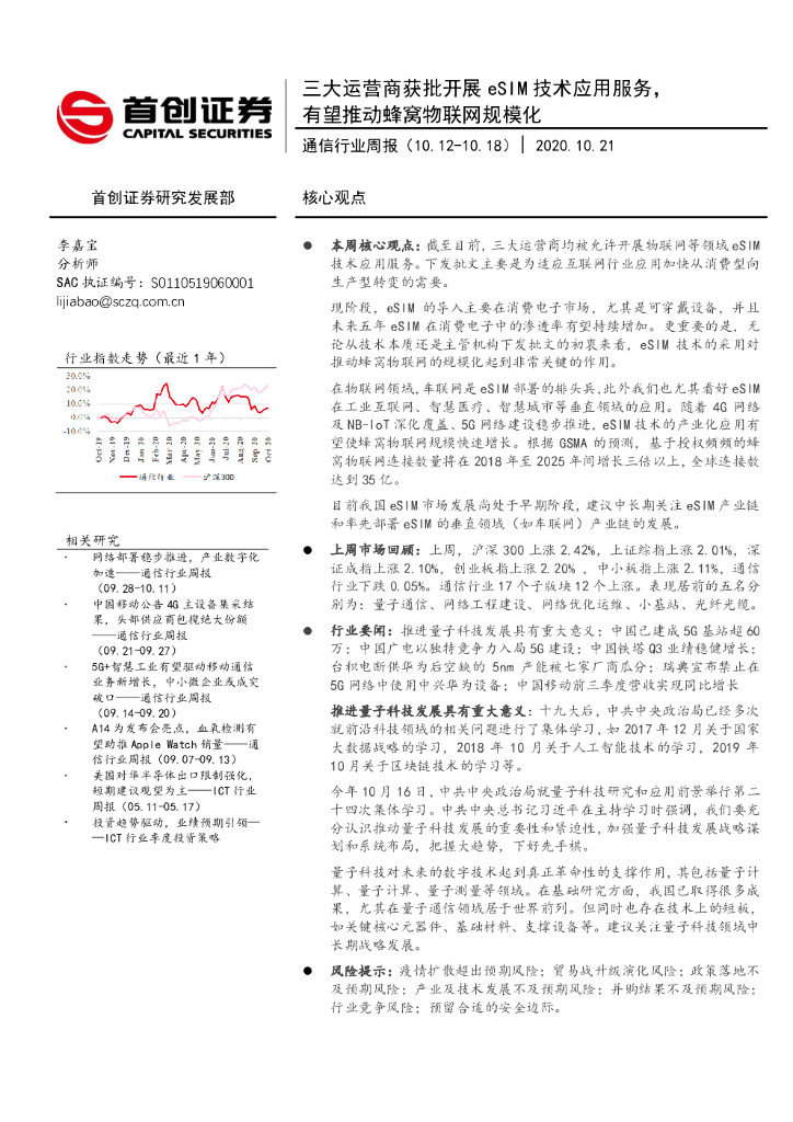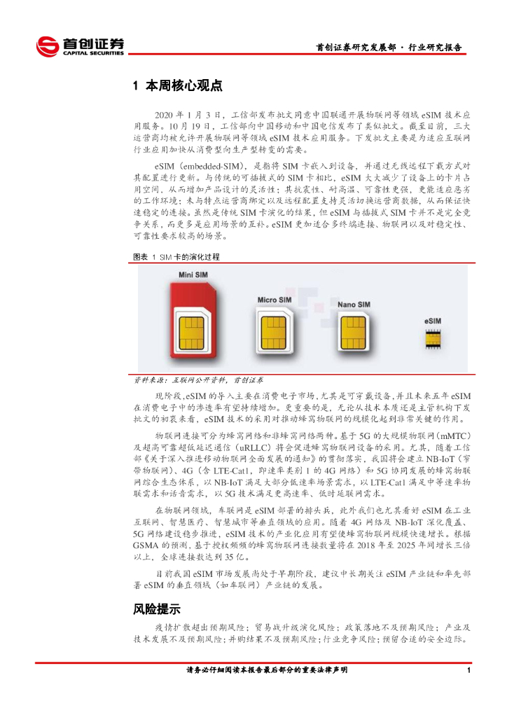 首创证券:通信行业周报:三大运营商获批开展eSIM技术应用服务,有望推动蜂窝物联网规模化.pdf