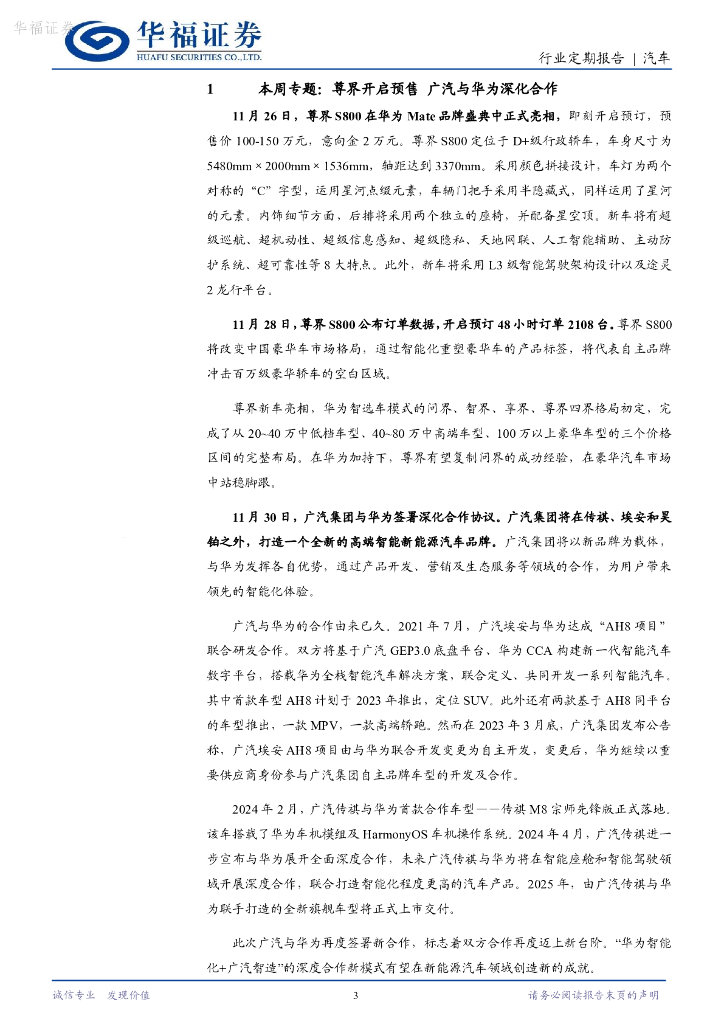 华福证券:汽车行业定期报告:尊界开启预售,广汽与华为深化合作.pdf