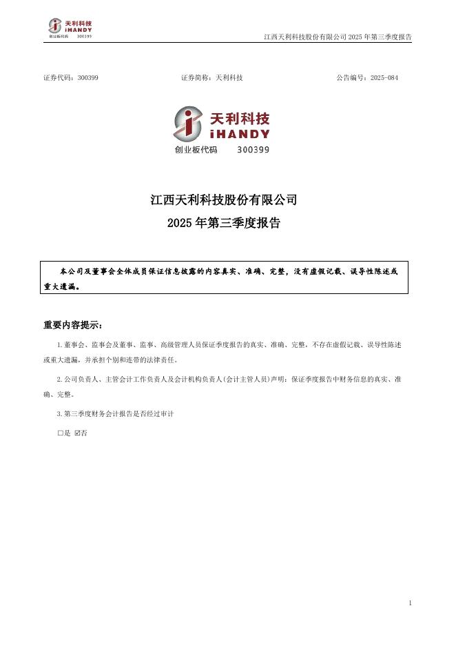 300399-天利科技:2025年三季度报告.pdf