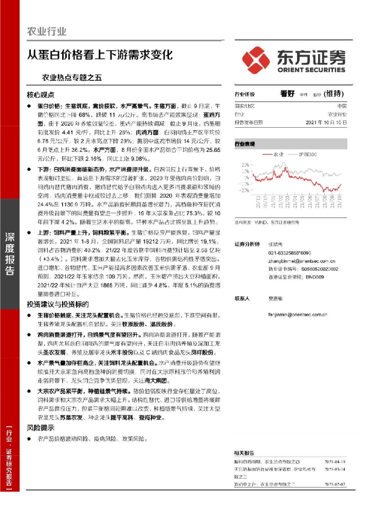 东方证券:农业热点专题之五:从蛋白价格看上下游需求变化.pdf