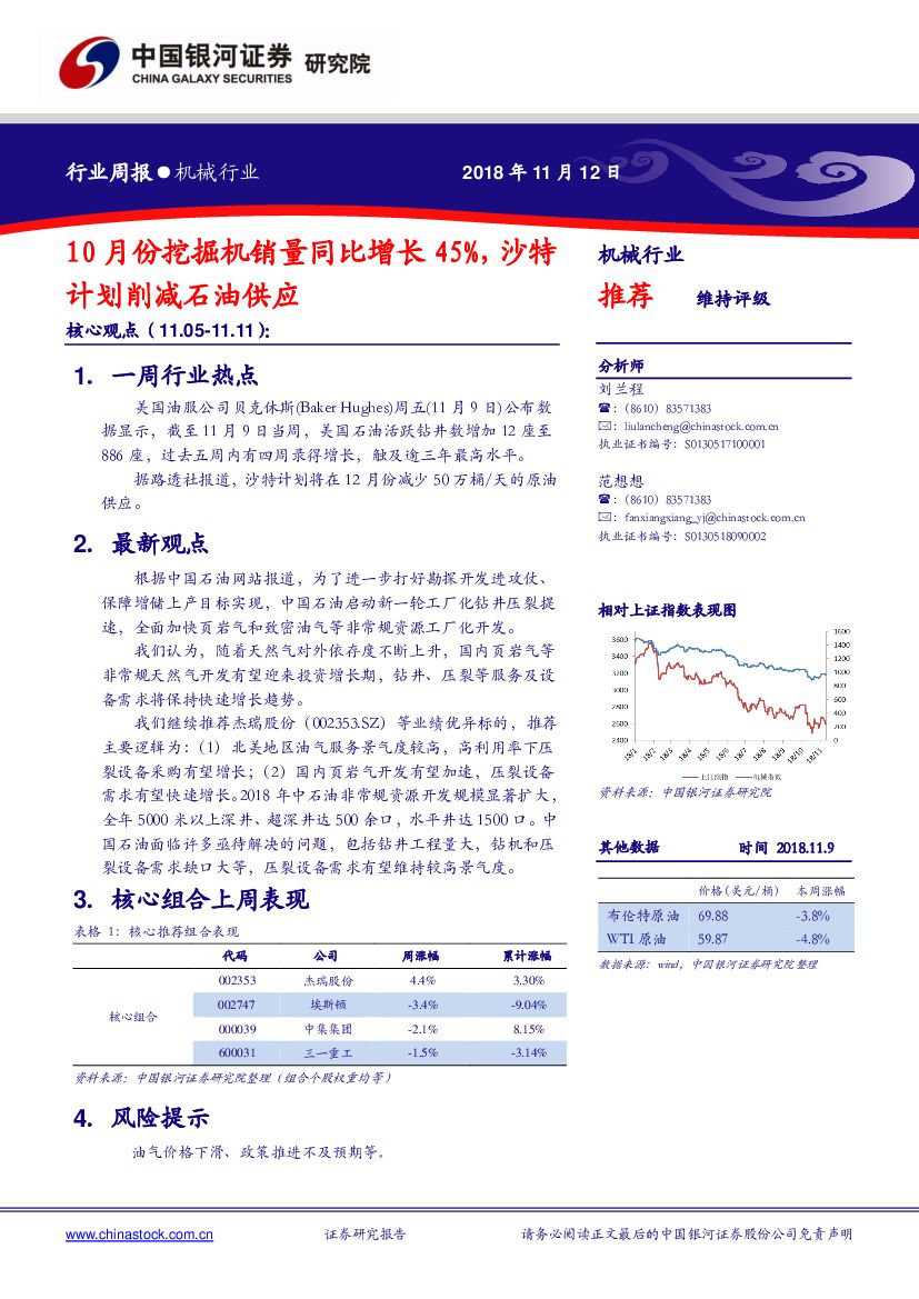 中国银河:机械行业周报:10月份挖掘机销量同比增长45%,沙特计划削减石油供应.pdf