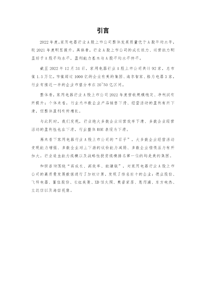 和恒咨询:家用电器行业A股上市公司高质量发展报告(2022年报).pdf