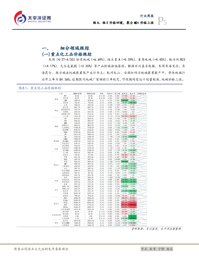 太平洋证券:基础化工行业周报:维A、维E价格回暖,聚合MDI价格上涨.pdf
