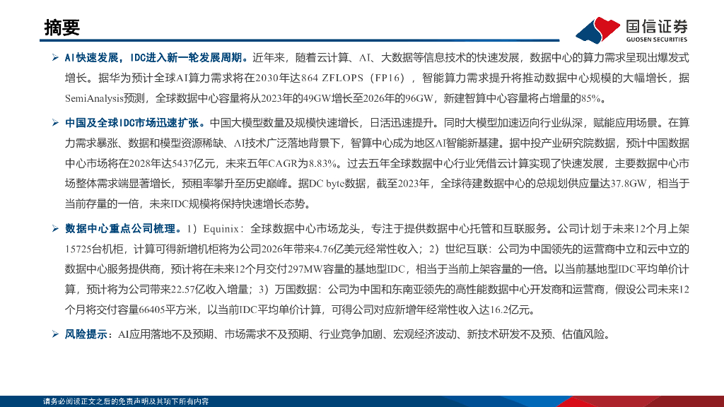 国信证券:IDC专题报告:AIDC周期来临,各厂竞逐份额.pdf