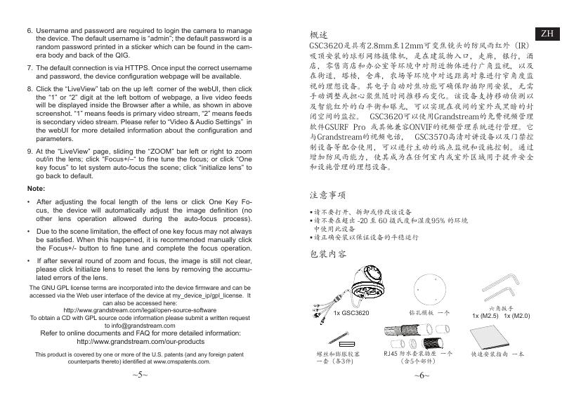 GSC3620 FHD红外防风雨变焦和自动对焦IP圆顶摄像头快速安装指南.pdf