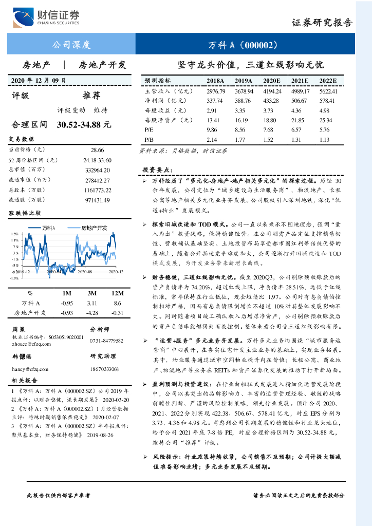 财信证券:万科A(000002)-坚守龙头价值,三道红线影响无忧.pdf
