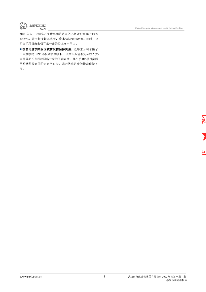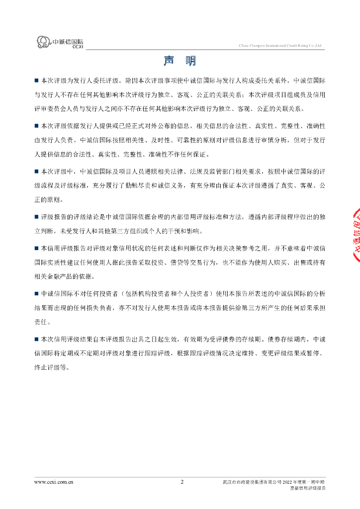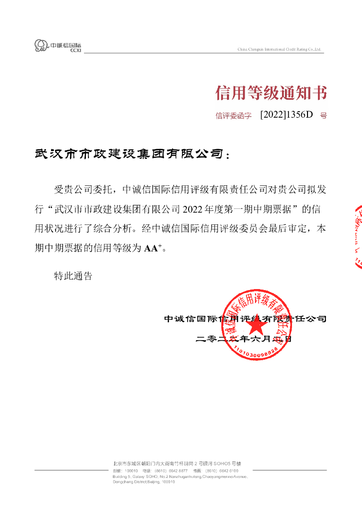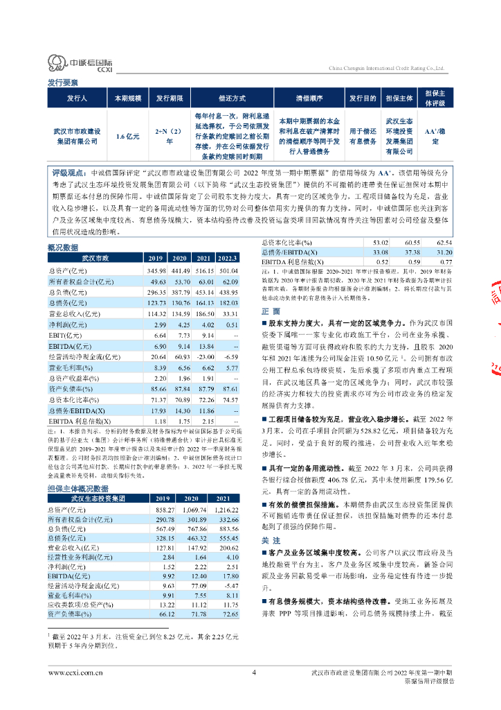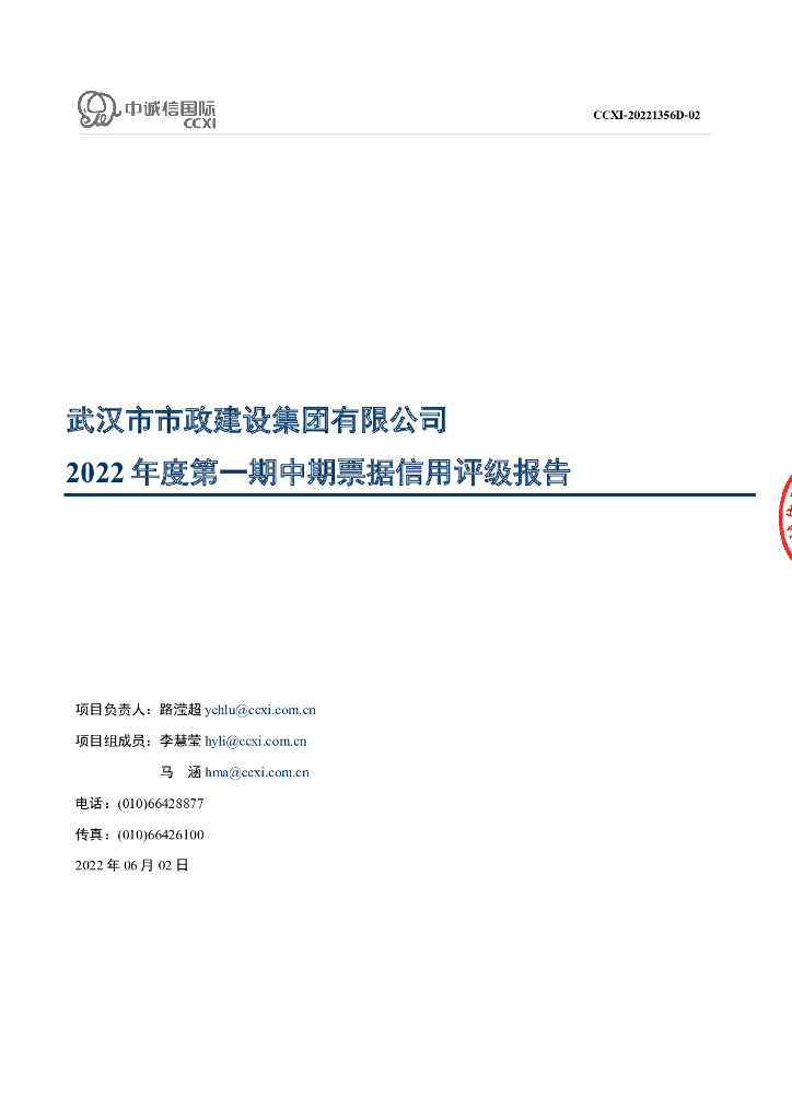 中诚信:武汉市市政建设集团有限公司2022年度第一期中期票据信用评级报告及跟踪评级安排.pdf
