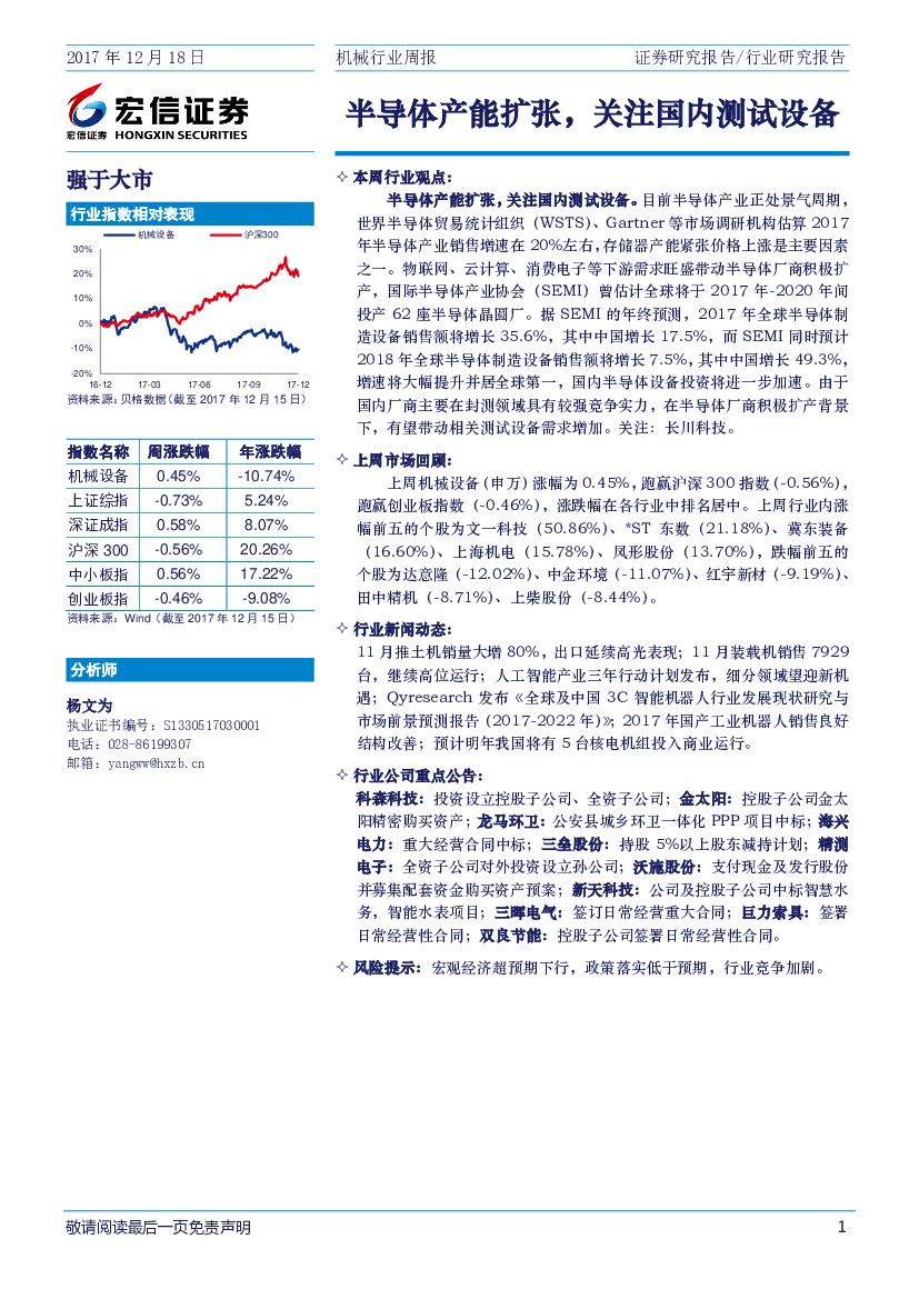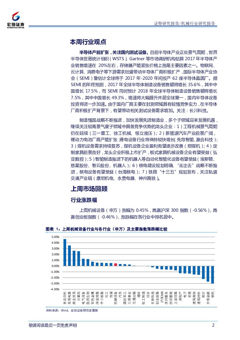 宏信证券:机械行业周报:半导体产能扩张,关注国内测试设备.pdf