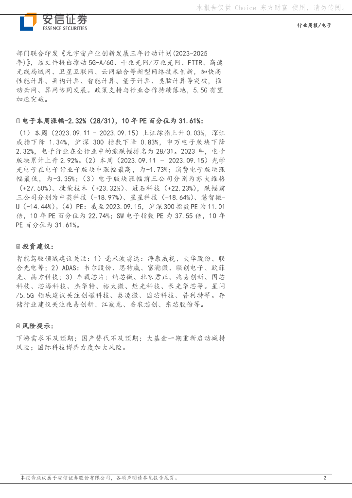 安信证券:电子行业周报:Dojo超算赋能自动驾驶,星闪/5.5G加快产业化进程.pdf