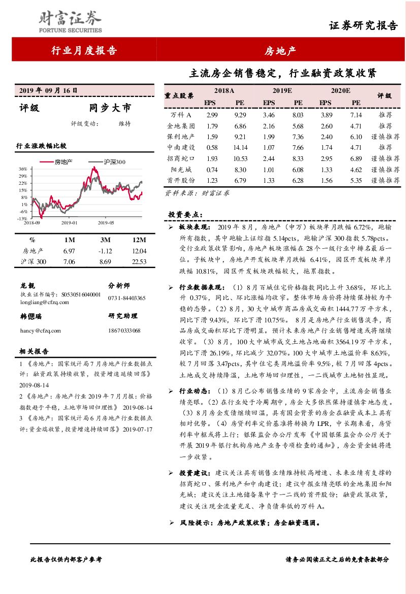 财富证券:房地产行业月度报告:主流房企销售稳定,行业融资政策收紧.pdf