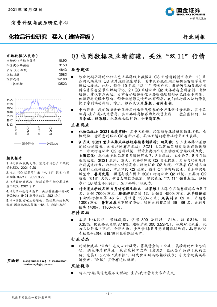 国金证券:化妆品行业研究:Q3电商数据及业绩前瞻,关注“双11”行情.pdf