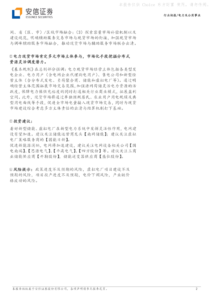 安信证券:电力及公用事业:《电力现货市场基本规则(试行)》发布,电力现货市场建设规范化推进.pdf