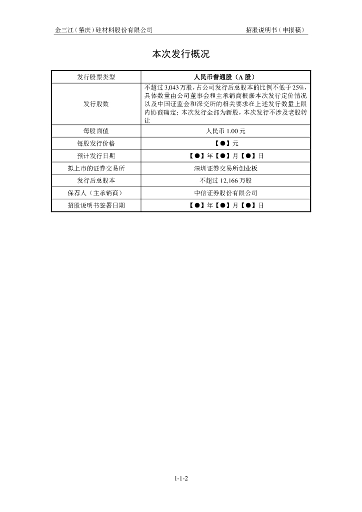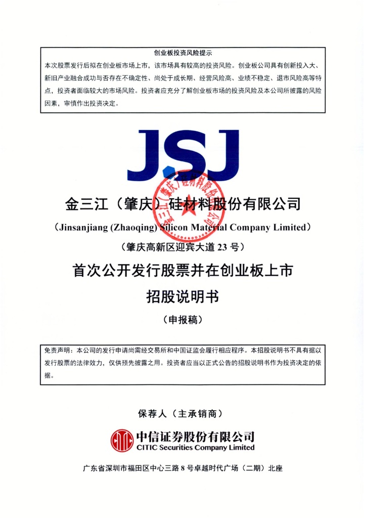 金三江(肇庆)硅材料股份有限公司深交所创业板IPO上市招股说明书.pdf