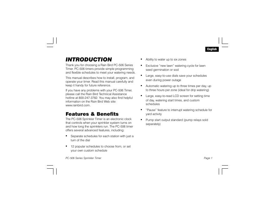 RAIN BIRD PC 506 SPRINKLER TIMER 安装操作指南.pdf