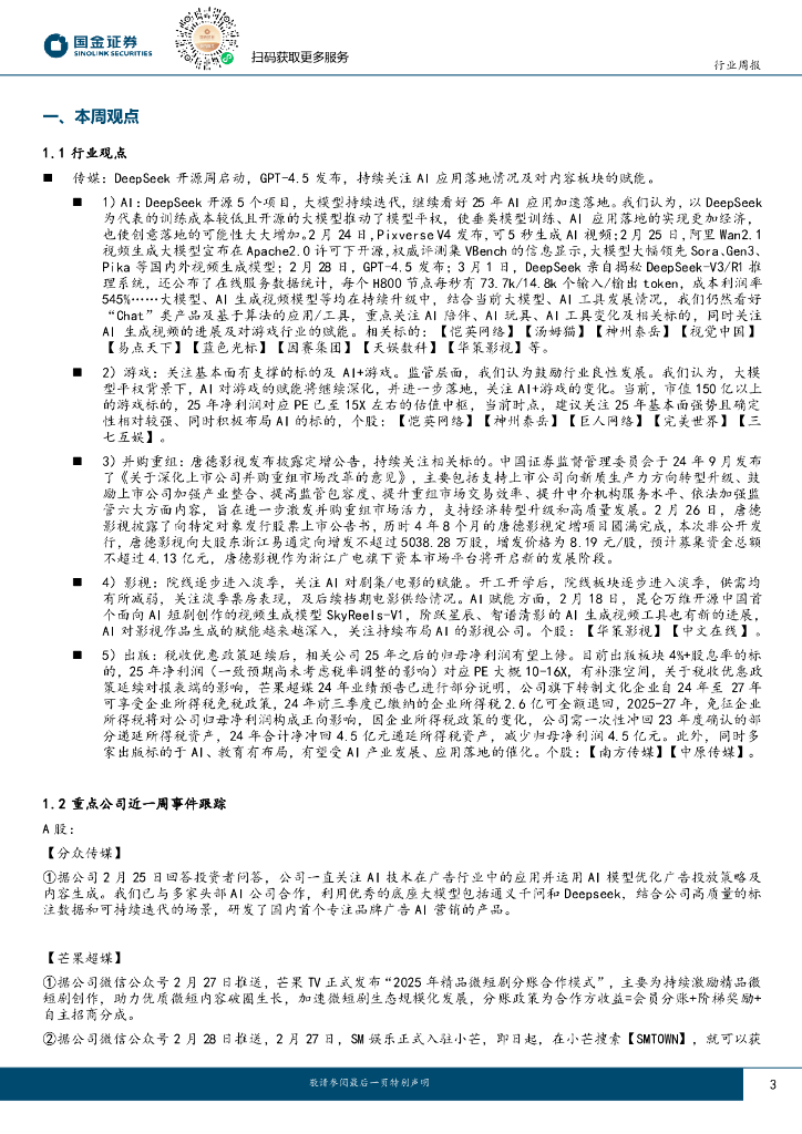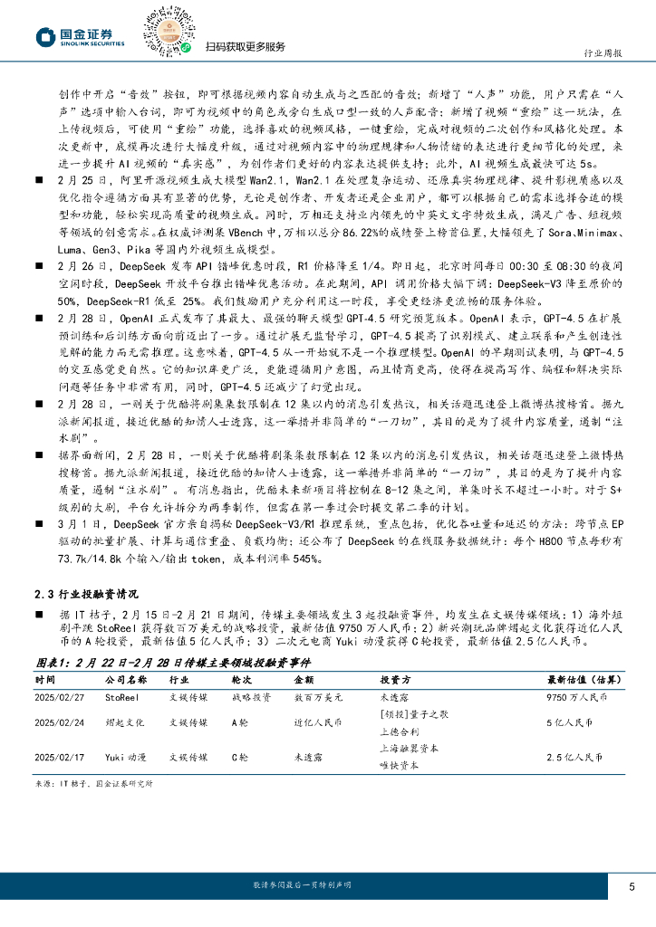 国金证券:传媒互联网产业行业研究:DeepSeek开源5个项目,GPT4.5发布.pdf