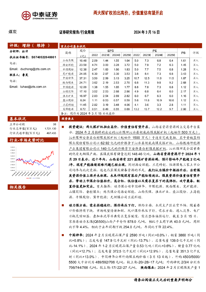 中泰证券:煤炭行业周报:两大探矿权拍出高价,价值重估有望开启.pdf